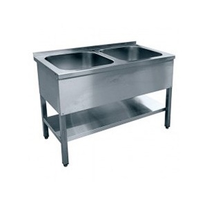 В столешнице ванны 2-х секционной ВМП-7-2-6 РН предусмотрено место под смеситель. Ванна 2-х секционная ВМП-7-2-6 РН оснащена пристенным бортиком и комплектуется сливным сифоном. Сварной каркас из квадратной трубы с полкой изготовлены из нержавеющей стали. Конструкция прочная и выдерживает большие нагрузки. Это гарантирует долгий срок эксплуатации ванны 2-х секционной ВМП-7-2-6 РН на производстве. Для удобства использования ножки с резиновыми вставками регулируются по высоте.