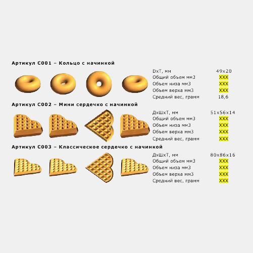 Для наглядности приведем пример такого расчета для бисквита «Сердце» с начинкой: